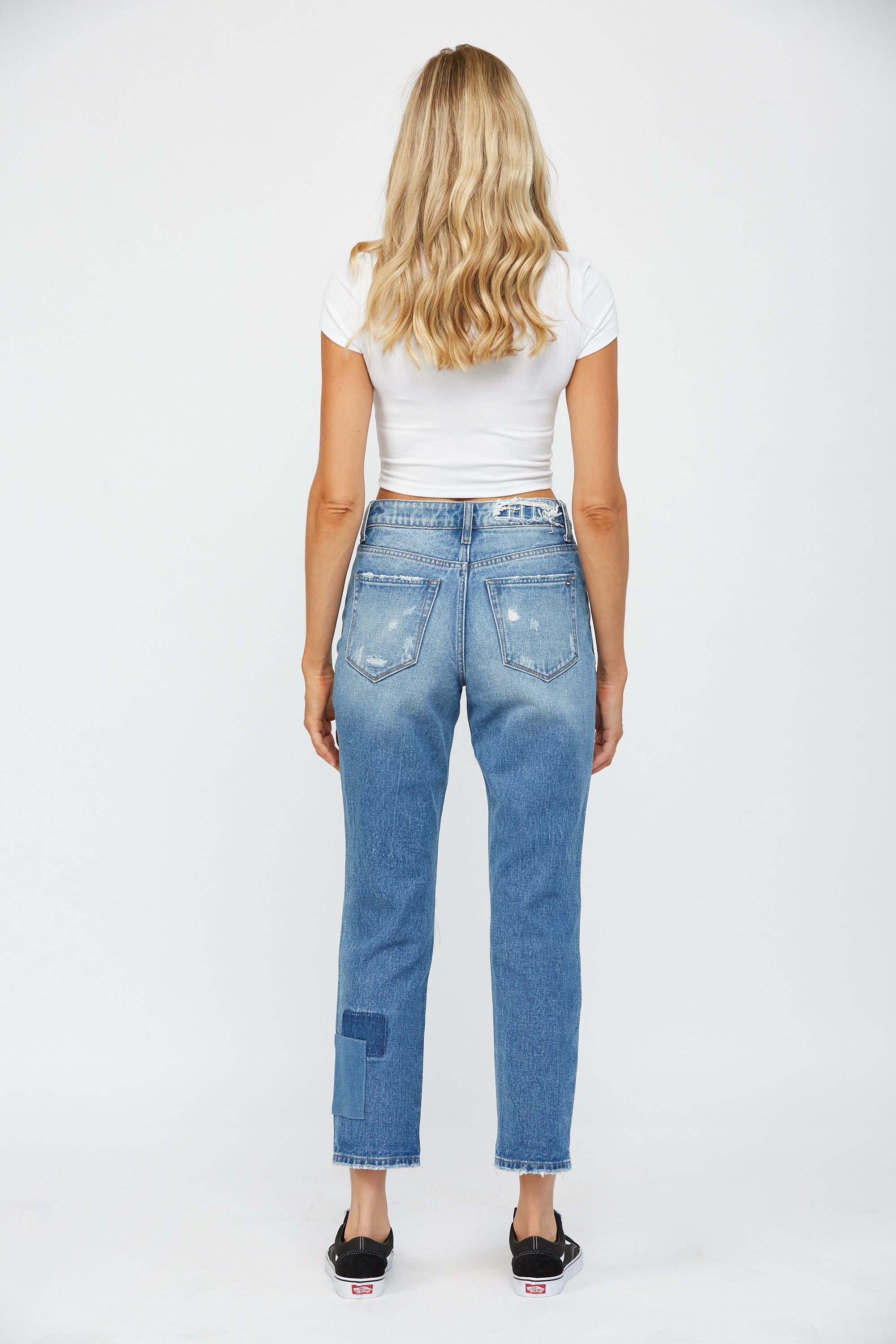 High Rise Boyfriend Crop With Stripe Patch