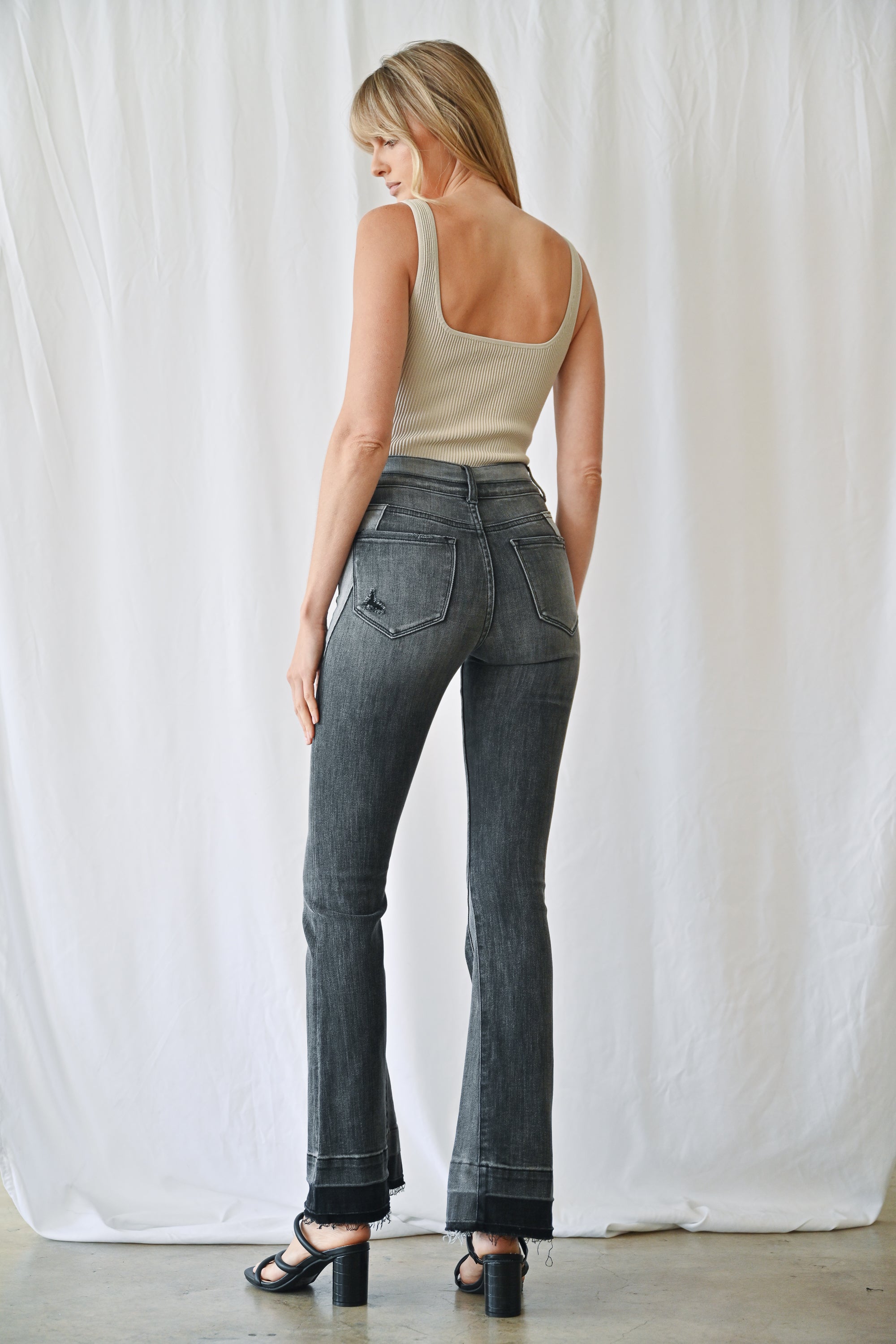 High Rise Flare Blocking 2-button With Let Out Hem