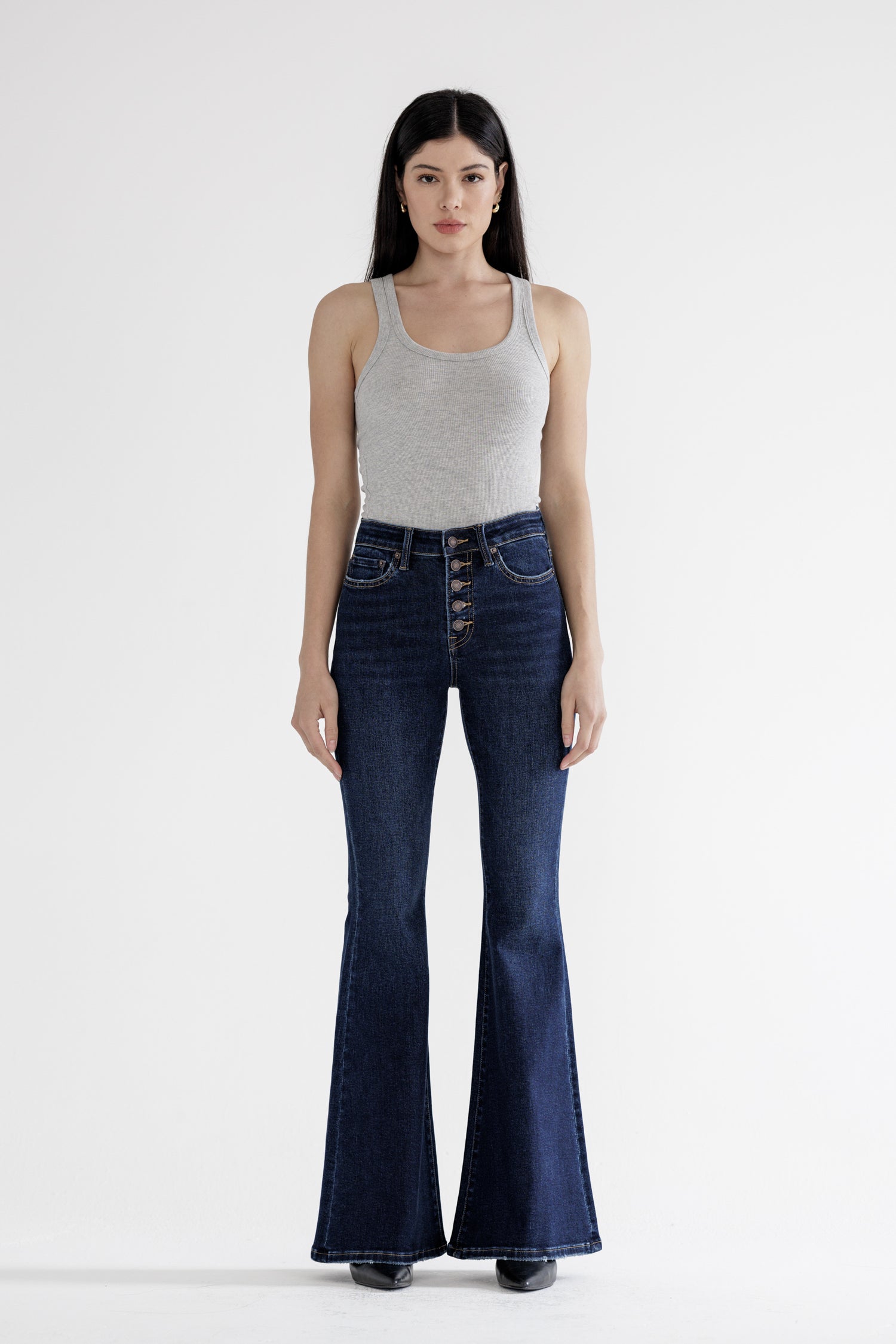 High Rise Super Flare With Button Up