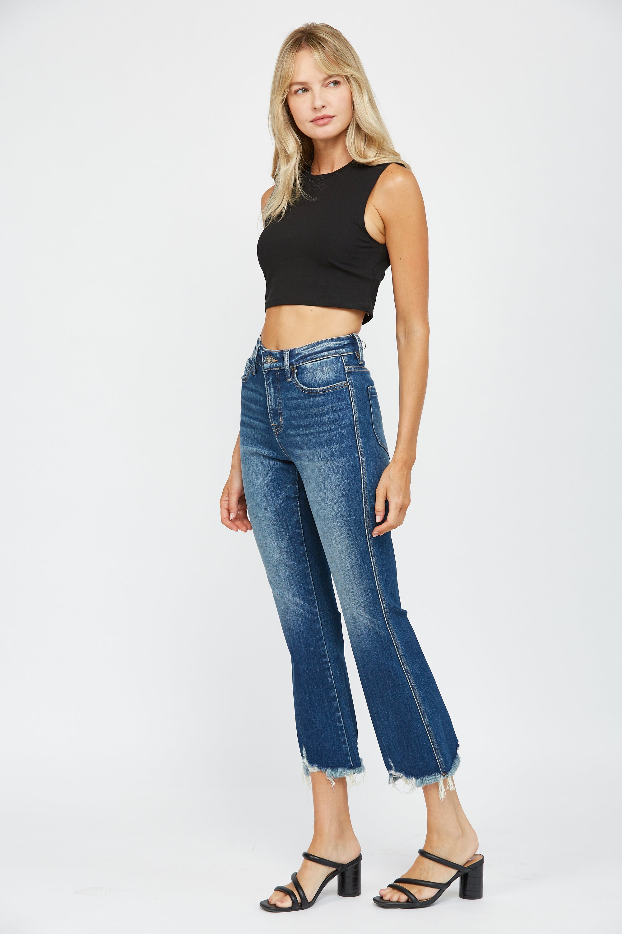High Rise Crop Flare With Uneven Hem