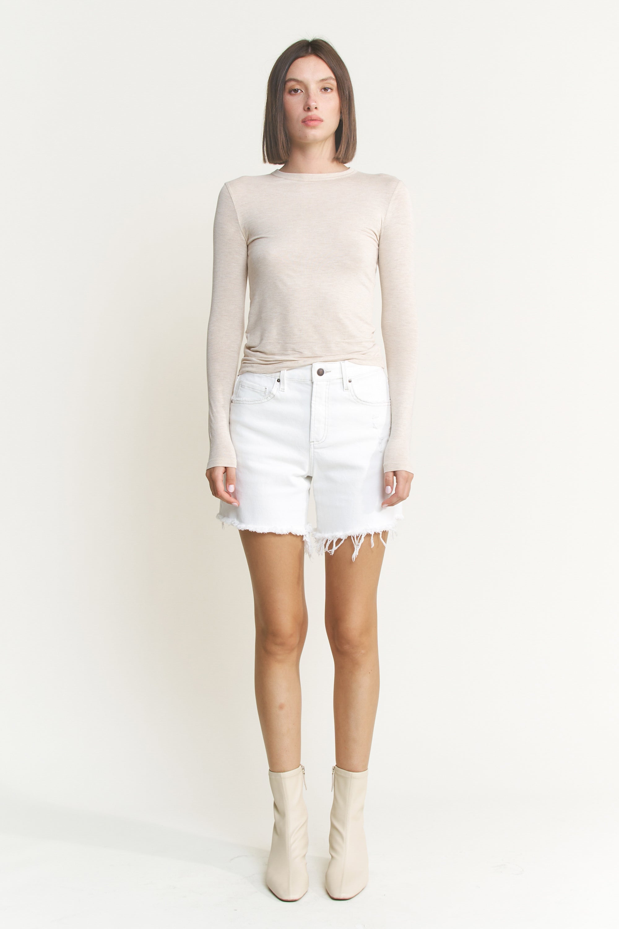 High Rise Distressed Frayed Hem Shorts