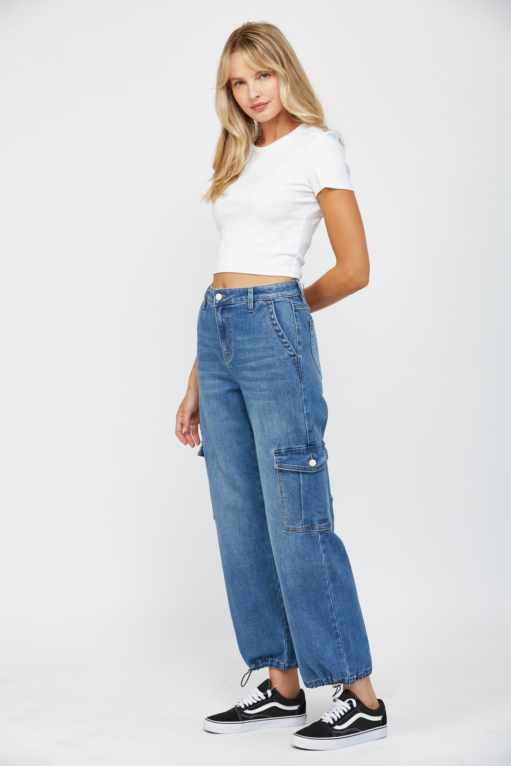 High Rise Cargo Pants With Hem Details